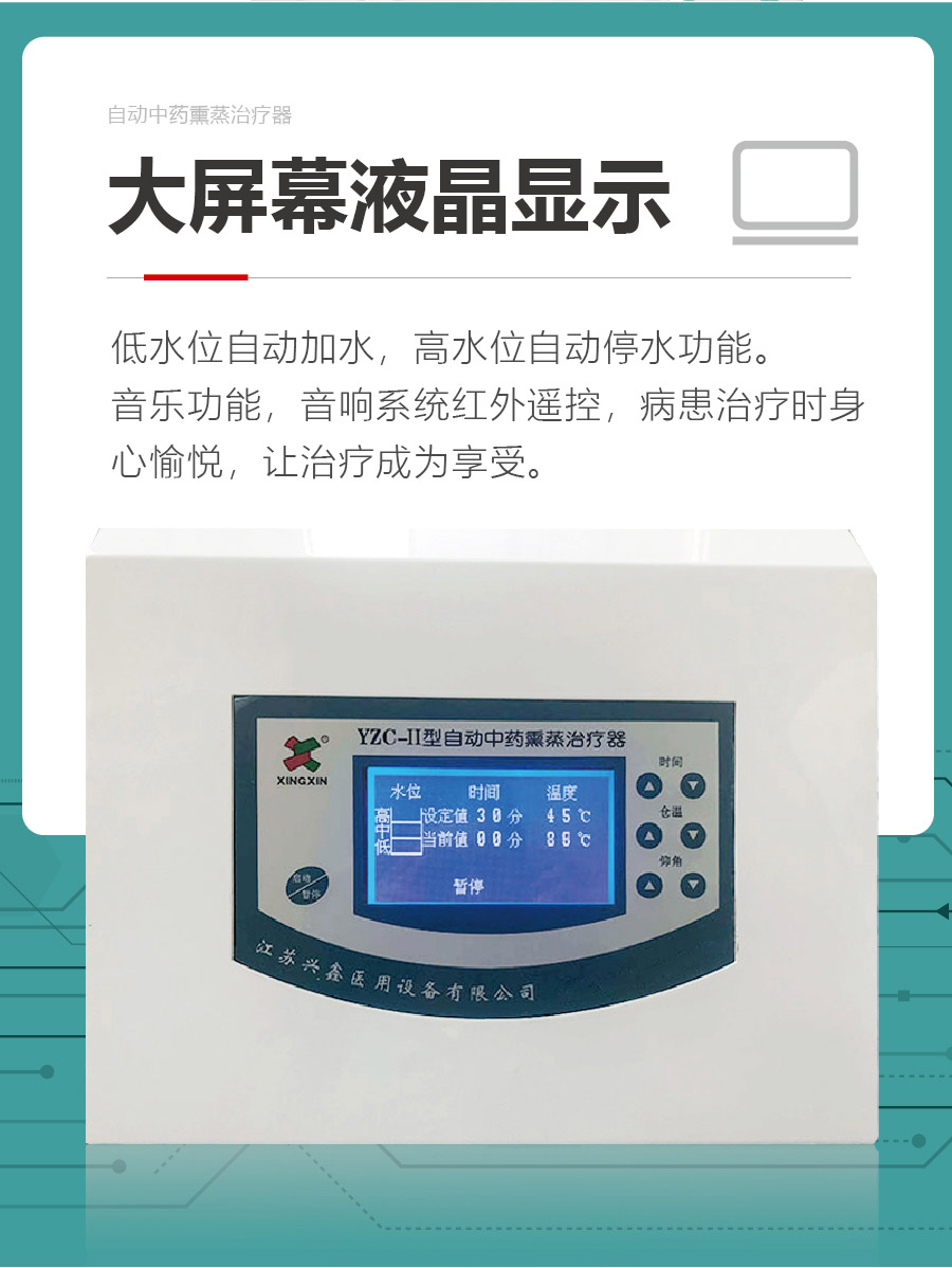 產品詳情YZC-ⅢD型自動中藥薰蒸治療器為多部位中藥熏蒸治療器,該產品三溫區水槽溫控、液控,具有藥液用藥、耗水量少,(噴塑鈑金殼體配合不銹鋼水槽)材質經濟耐用等優點???.....